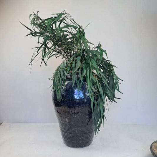 Rare Antique Glazed Pottery Vase- Black/Blue, Shanxi, China