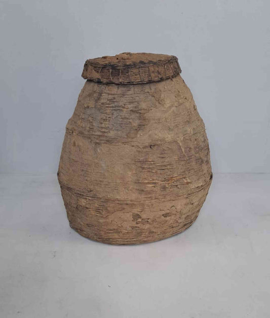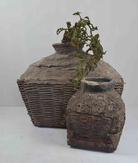 Already found & claimedAntique Chinese Wicker & Clay Oil Bottle - Handmade Elmwood