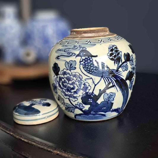 Blue & White Chinese Ginger Jar - Antique Porcelain Tea Leaf Jar, Handcrafted 15cm Vase, Unique Vintage Decor, Traditional Elegance