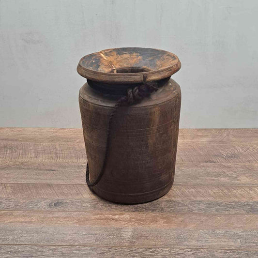 Already found & claimedAntique Wooden Himachal Pot - Ring and Rope Detail