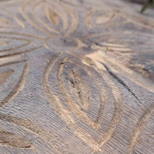 Already found & claimedVintage Indian Wooden Chapati Dish with Carving