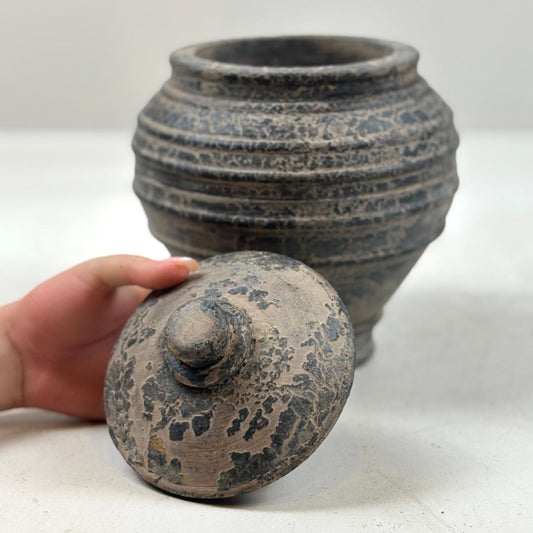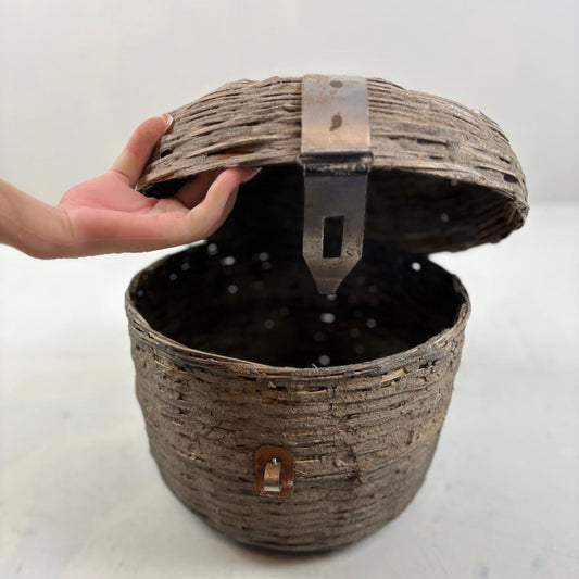 Already found & claimedWicker and Clay Bhutanese Basket with Hinged Lid