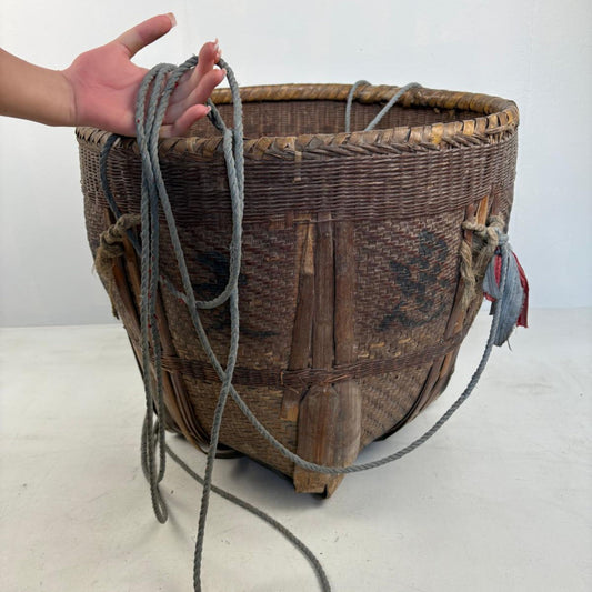 Already found & claimedAntique Chinese Reed Grass Basket with Rope Detail - Houbali, Shandong Province, China