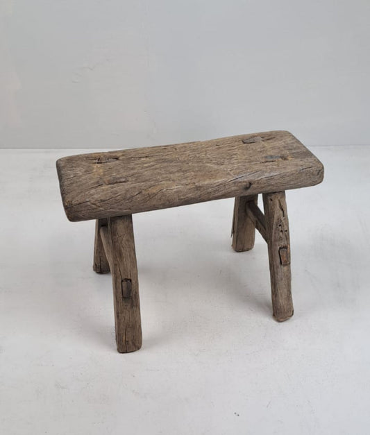 Authentic Antique Chinese Milking Stool Handmade Elmwood, 30x20x18cm Unique Historical Décor Piece Perfect for Design Projects & Collectors