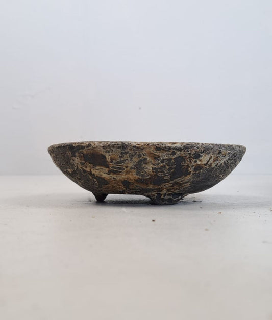 Aged Stone Bowl with 3 Feet - Rough Surface, 17cm Diameter, 5cm High - Rustic Decorative Catch-All, Vintage Home Decor. Unique stone bowl