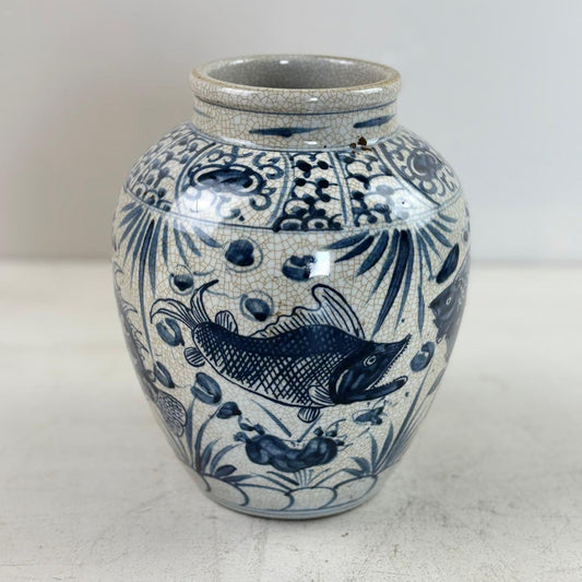 Blue & White Chinese Ginger Jar - Handcrafted Porcelain Tea Leaf Vase