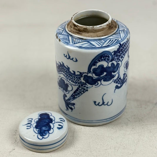 Blue and White Chinese Ginger Jar, Porcelain Tea Leaf Vase