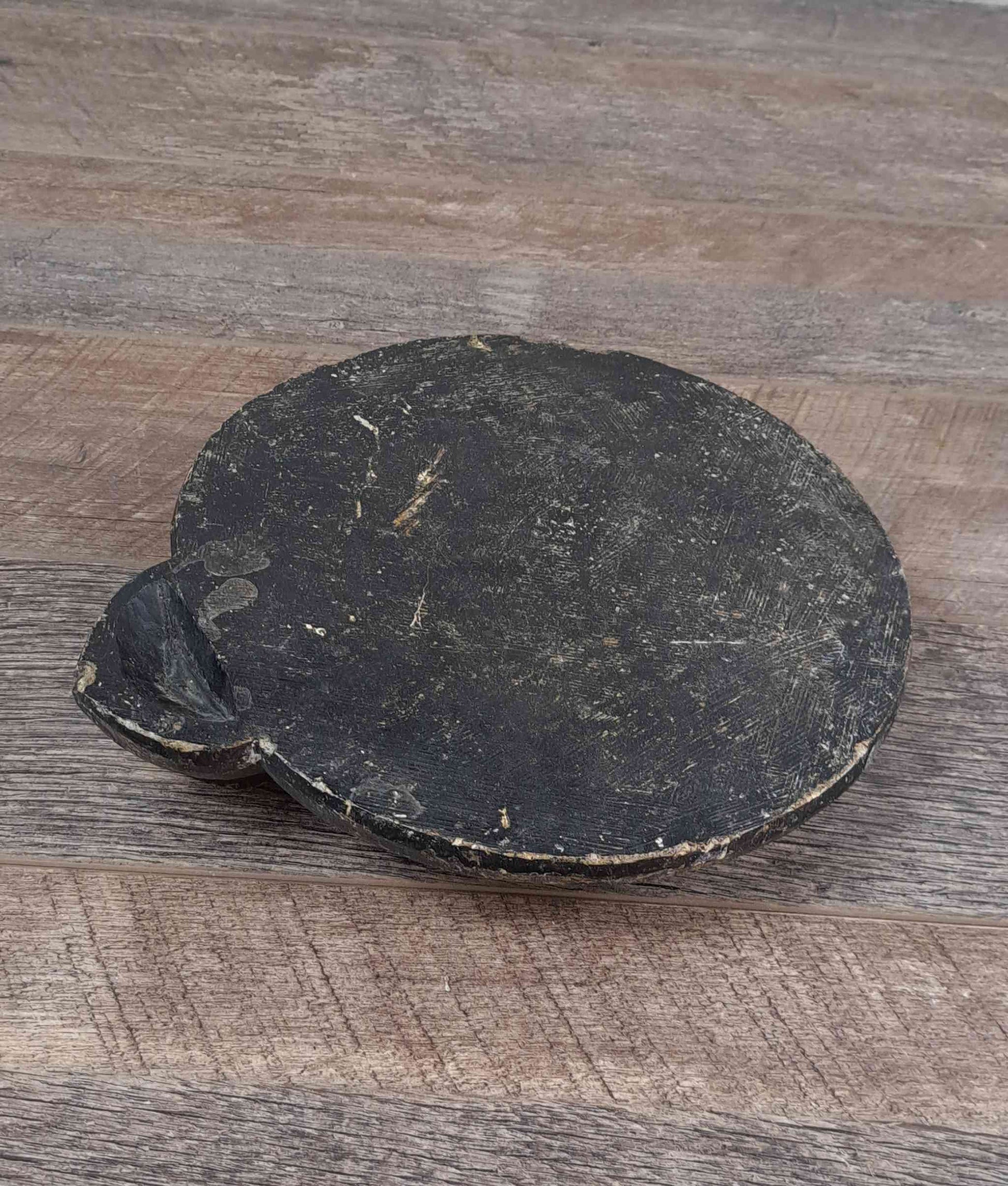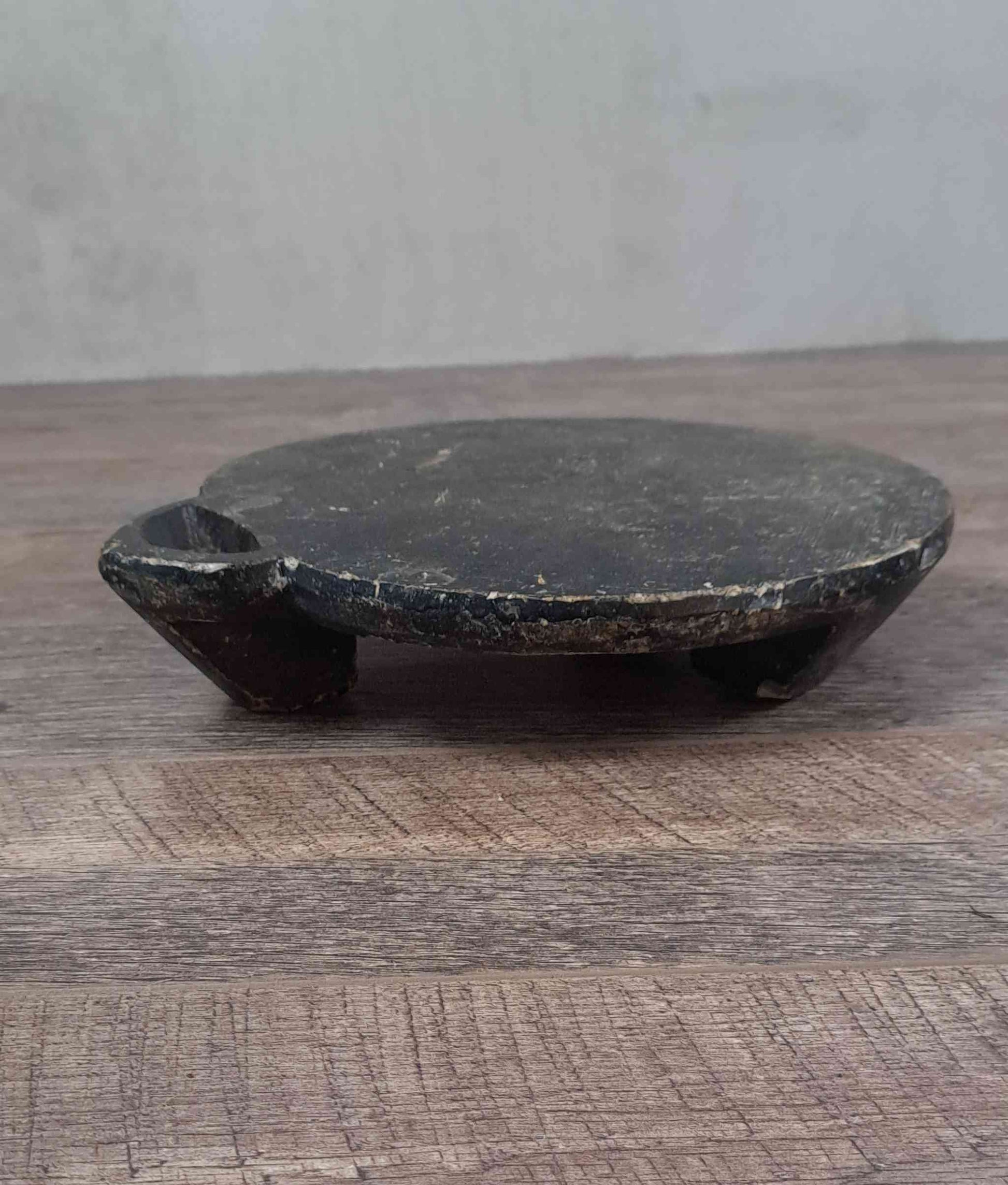 This vintage chapati board is the perfect addition to your home decor. Hand-carved from wood or stone, this unique and imperfect piece can be used as a tray or riser for your favorite decor objects, or even as a stand for candles. With its Indian heritage, it's sure to make a great gift and add an exotic touch to any interior design.
